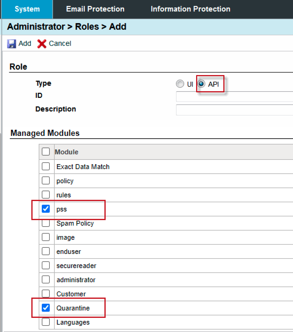 Proofpoint on Demand (PoD) administrators must file a support ticket to Proofpoint support to obtain a role with access to an API.